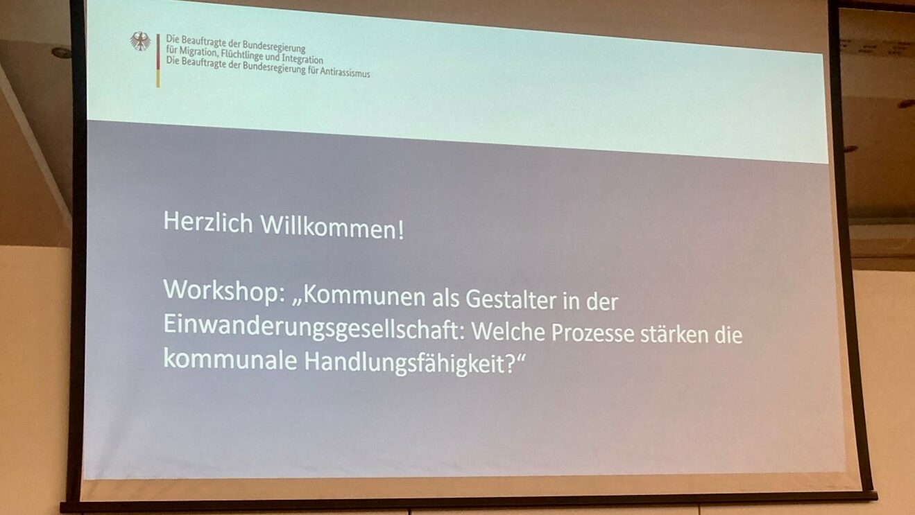 The project team was represented with one of the three workshops on the first day and presented the project together with two practice partners from the Rhineland-Palatinate Ministry for Family Affairs, Women, Culture and Integration and the district of Birkenfeld, a pilot municipality. In the subsequent discussion, it served as a practical example of how the role of municipalites as active creators of local immigration society can be strengthened structurally.